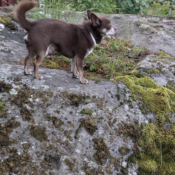 Chihuahuahane 2019-11-05 Chocolate with white stripe. Short hair Pedigree/Stamtavla REG. SKK