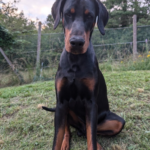 Dobermann issu d'une bonne lignée. Affectueux, joueur et toutes les qualités et les défauts du doby, en somme l'archétype du Dobermann
