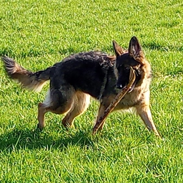 Ostdeutscher Schäferhund, grau, schwarzes Gesicht, lockiges weiches Fell Gedeckt am 22.06.2024 (Sunny Lee)