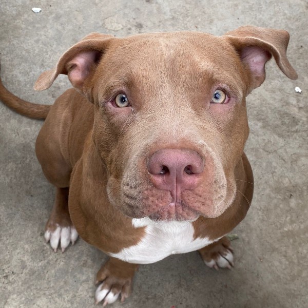 Pitbull American Bully Color Silver Fawn Nariz roja Ojos azules verdosos