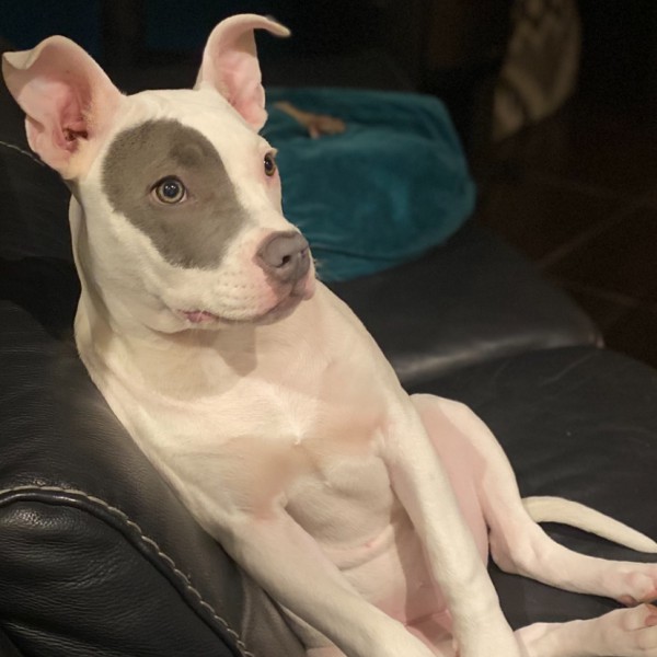 Chienne Américain Bully Blanche et bleu